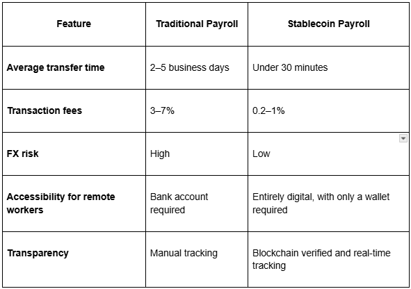 Comparison: Traditional Payroll vs Stablecoin Payroll